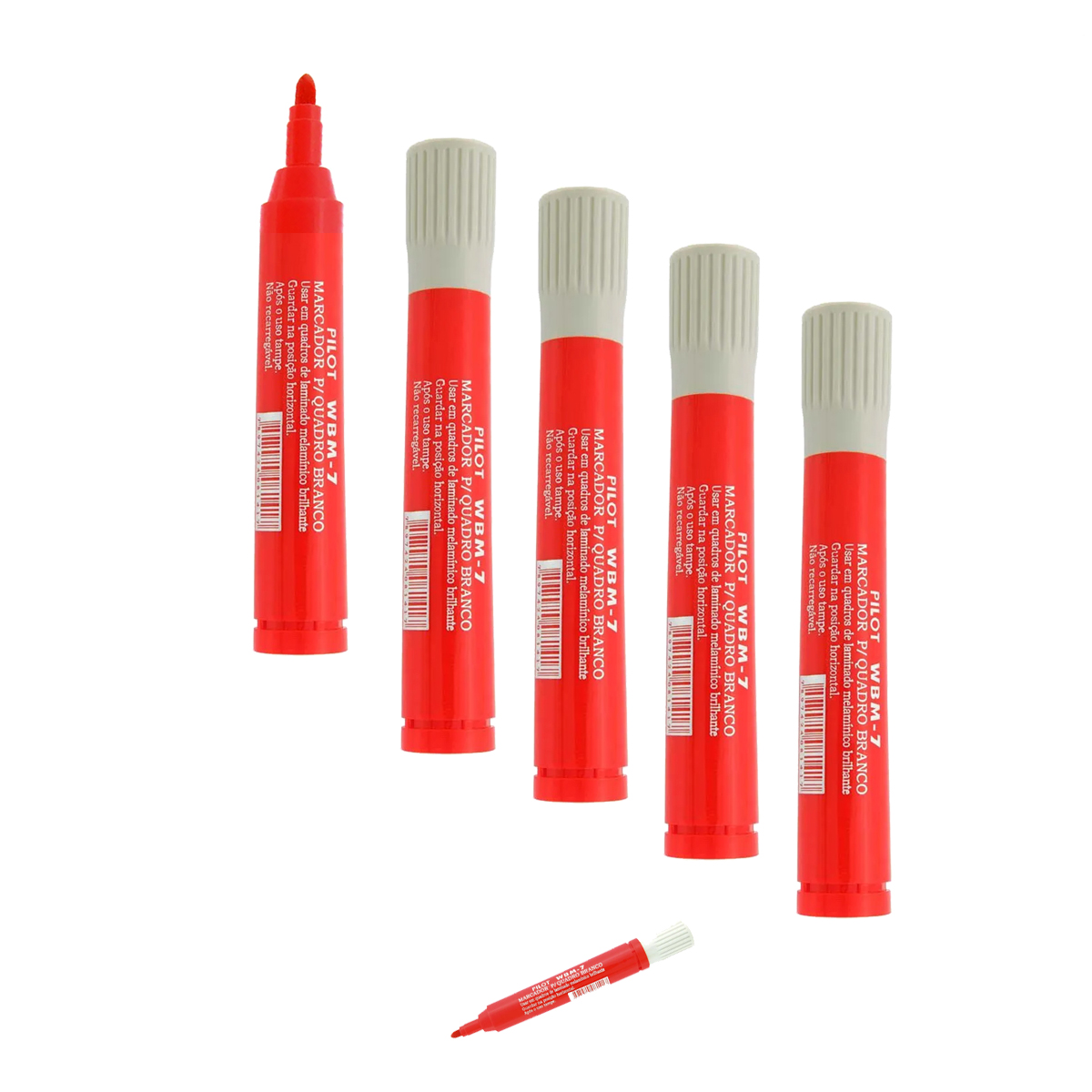 O Kit com cinco unidades da Caneta Marcador de Quadro Branco Pilot Modelo WBM-7 cor Vermelho é a opção perfeita para quem busca economia, alta frequência de uso e organização. Ideal para escolas, cursinhos, empresas, workshops, treinamentos contínuos e atividades colaborativas, esse kit garante que você sempre tenha um marcador pronto para levar suas ideias ao quadro, sem interrupções. A tinta de alta intensidade proporciona destaque extremo, mesmo em ambientes amplos, enquanto a secagem rápida assegura apresentações limpas, evitando borrões. Cada marcador da linha WBM-7 conta com corpo anatômico, agradável ao manuseio, e ponta bullet de altíssima resistência, permitindo escrever, desenhar, contornar e destacar com nitidez e segurança. O sistema de recarga de tinta prolonga a vida útil das canetas, reduz o descarte de plástico e contribui para a sustentabilidade ambiental. Fácil de apagar, não agride o quadro branco, evita manchas e resíduos indesejados. Livre de xileno e com baixo odor, garante conforto mesmo em locais fechados. Tenha produtividade, qualidade, confiança e o reconhecido padrão Pilot ao seu lado na rotina educacional e profissional. Kit pensado para quem valoriza desempenho, sustentabilidade e organização!