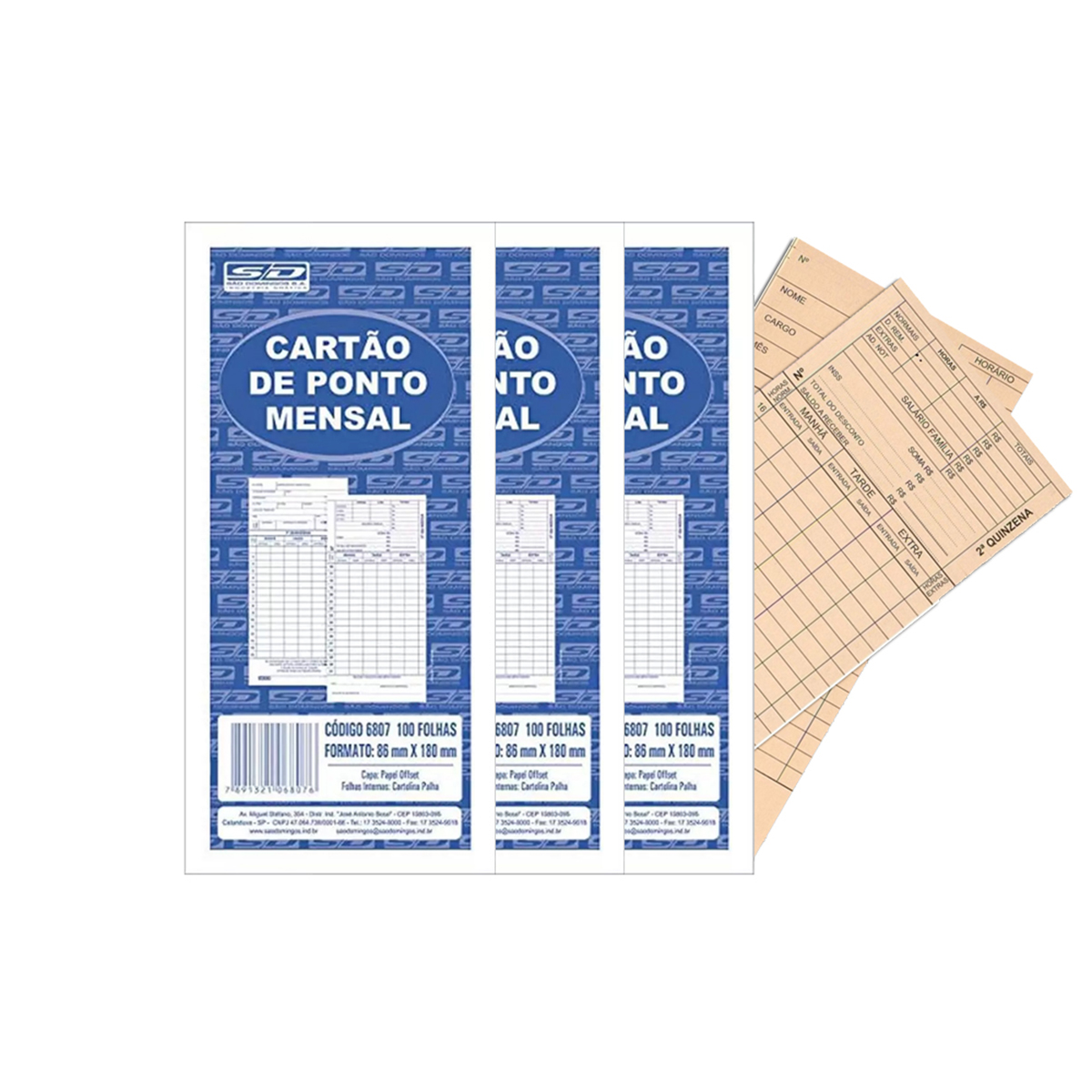 Cartão De Ponto Mensal SD 86x180 Spiral 100 Un Kit 3