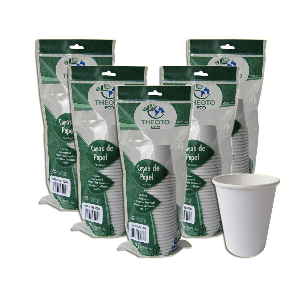 Copo De Papel Biodegradável 100 ml 25 Unidades Kit 5