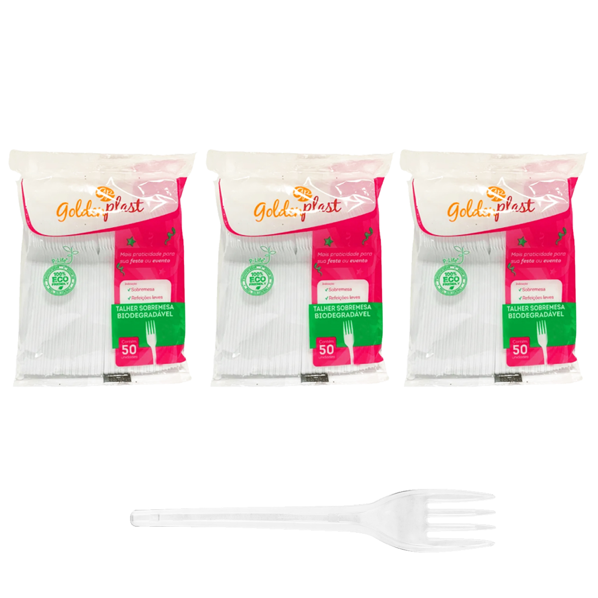 Garfo Garfinho Talher Transparente Bio Sobremesa Kit 3