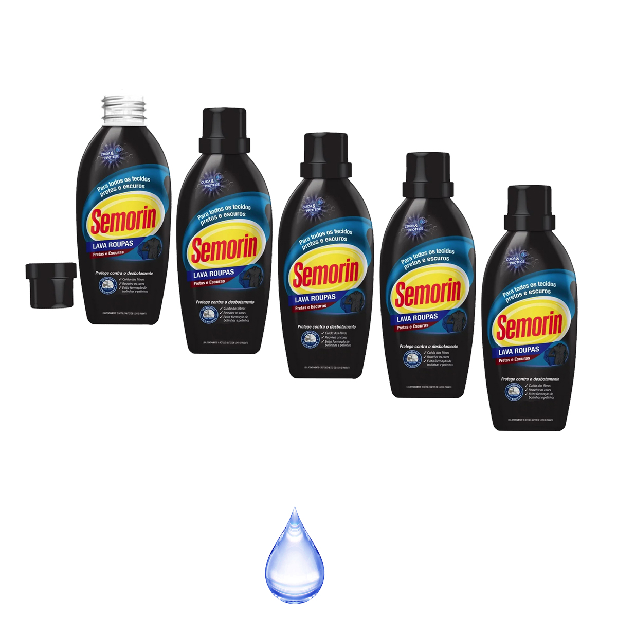 Se você lava muita roupa escura, tem família grande, usa uniforme, ou simplesmente prefere comprar poucas vezes e resolver de uma vez, o Kit com 5 unidades do Lava Roupas Pretas Semorin é a opção mais estratégica. Ele entrega economia em maior escala e um estoque prolongado para manter sua lavanderia abastecida por muito mais tempo, sem a preocupação de reposição constante.O diferencial está na combinação de limpeza do dia a dia com foco em cuidar do visual das peças pretas e escuras, ajudando a manter o aspecto mais bonito e uniforme. A fórmula líquida é prática: dissolve com facilidade, simplifica a dosagem e se adapta bem à rotina, trazendo eficiência para lavagens frequentes. Excelente para camisetas pretas, jeans escuro, roupas sociais, moletom, uniformes e peças que você quer preservar.Com 5 unidades, o benefício é claro: mais autonomia, menos compras, mais previsibilidade e melhor aproveitamento do seu tempo. Um kit pensado para quem busca praticidade real, organização e valor agregado — ideal para manter as roupas escuras sempre bem apresentadas, com aquele “preto de respeito” que faz diferença no look.