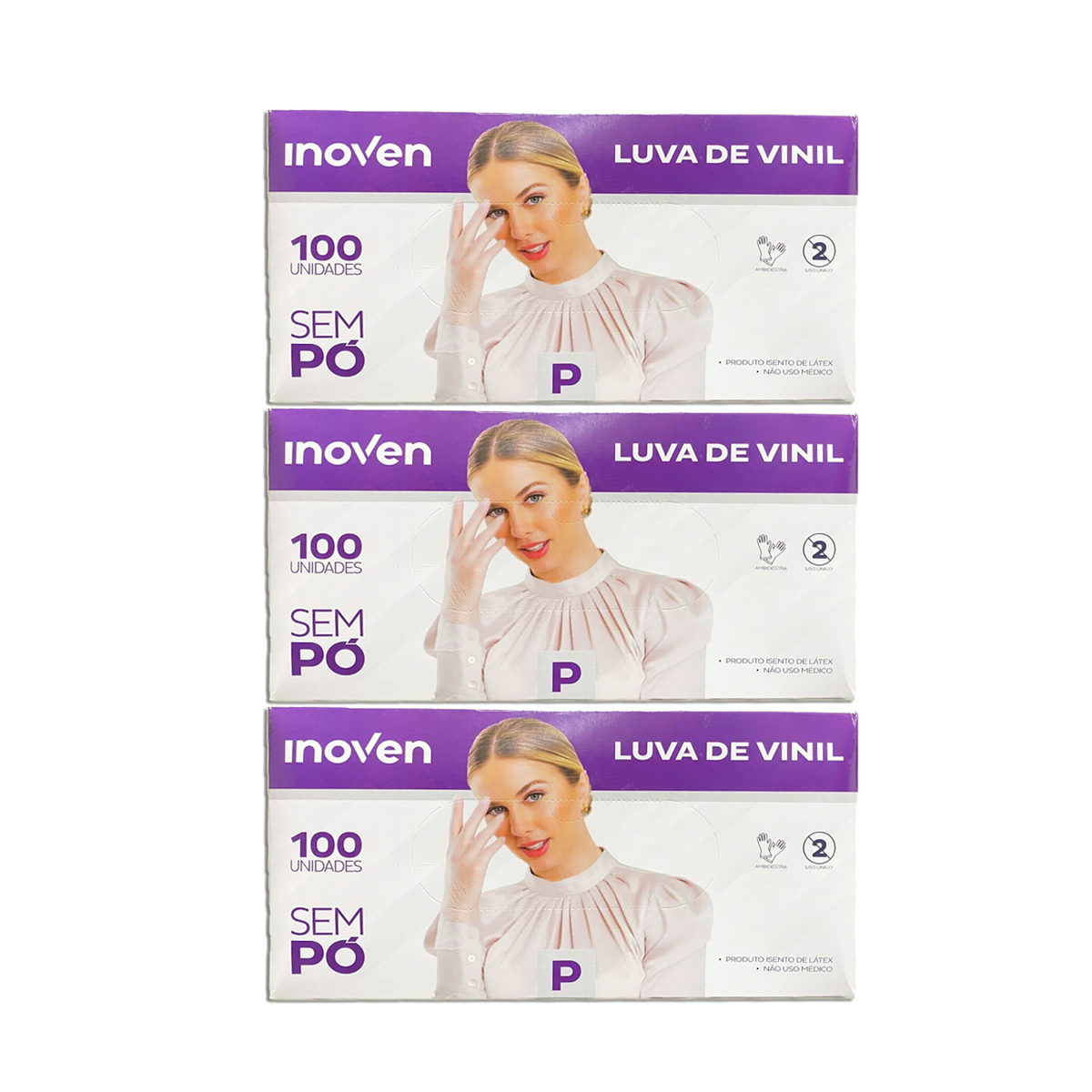 Luva De Vinil Inoven P 100 Unid Sem Pó Kit 3