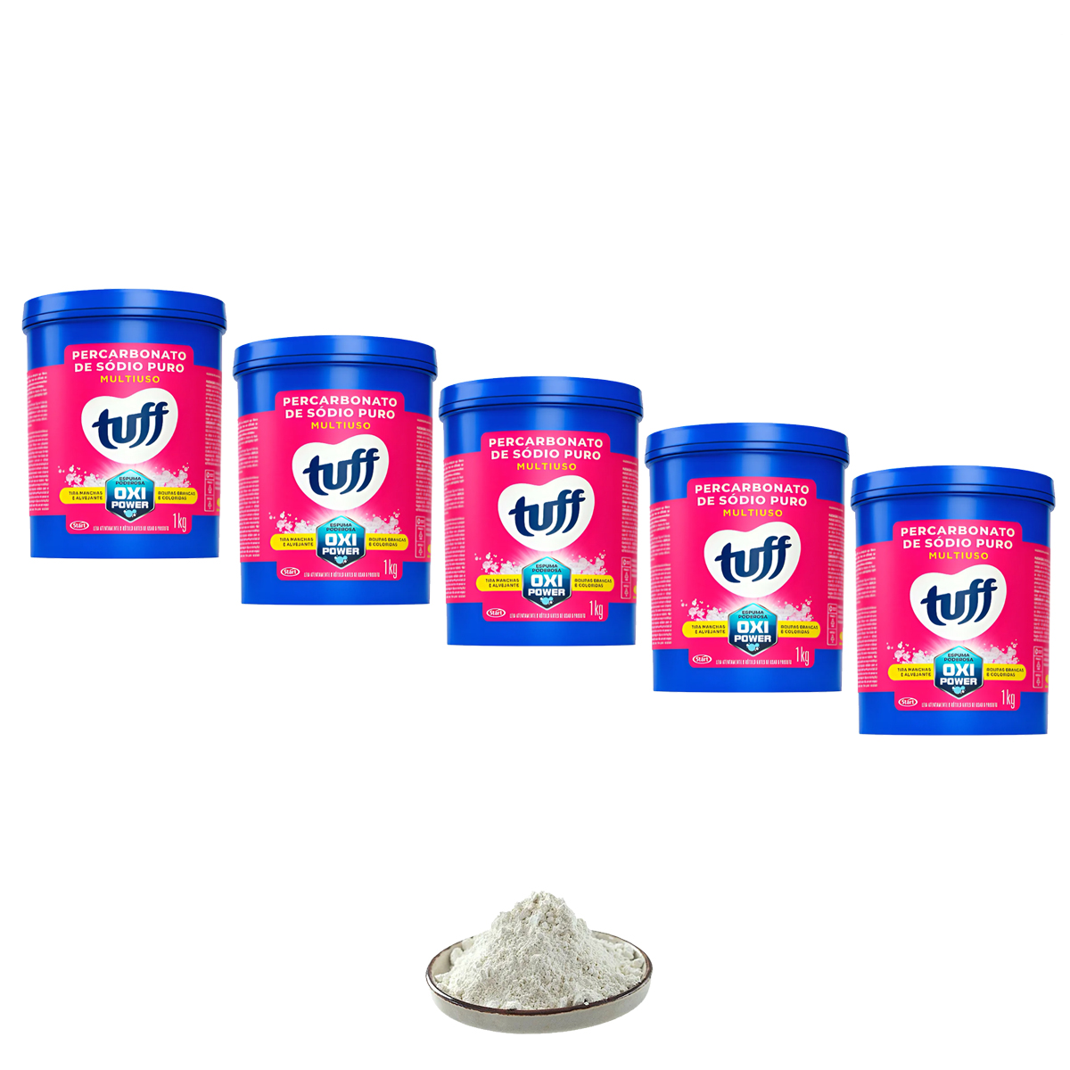O Kit com 5 unidades do Percarbonato de Sódio Puro Multiuso Tuff é para quem quer economia em maior escala e máxima praticidade. Perfeito para casas com alto volume de lavagens, uso recorrente em limpeza pesada ou para quem gosta de manter estoque e evitar compras frequentes.Com percarbonato disponível sempre que precisar, você ganha agilidade para lidar com manchas persistentes, odores e sujeiras do dia a dia em roupas e em áreas laváveis da casa. É uma compra estratégica: mais unidades, mais autonomia e mais eficiência na sua rotina de cuidados.